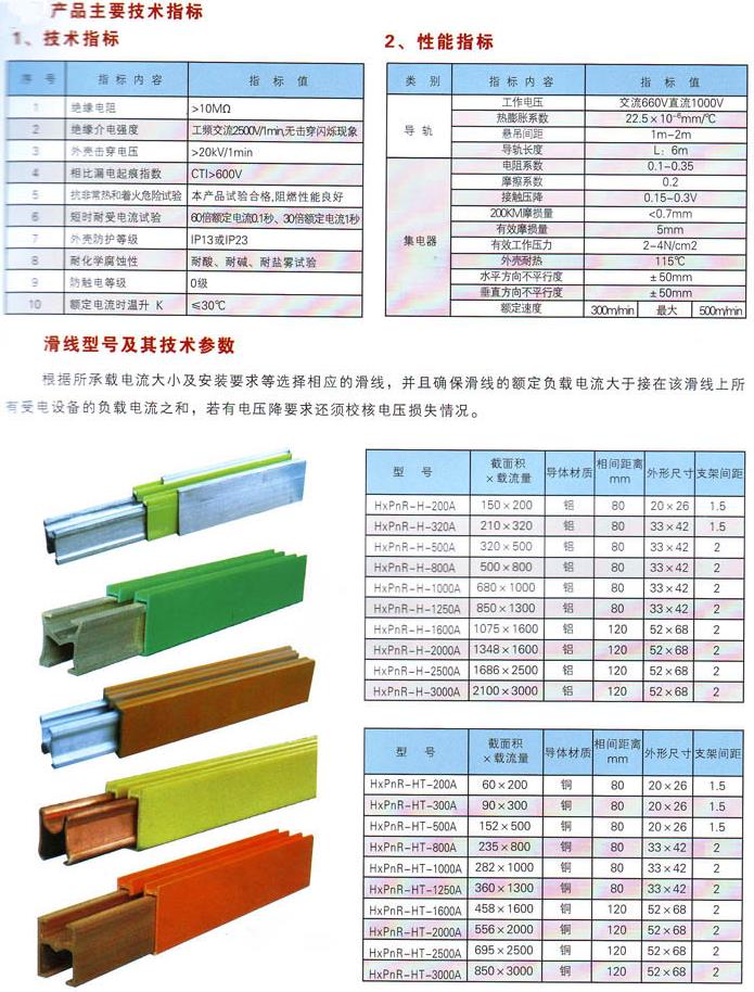 HXPnR-H系列單極組合式滑觸線規(guī)格參數(shù):