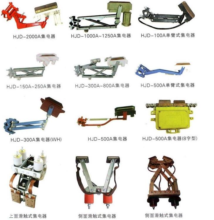 HJDX系列集電器是滑觸線系統中集電側拾取電能的主要裝置之一,它通過集電刷與導軌的滑動接觸,將電能直接傳導至用電器,從而實現系統的移動供電。集電器由機械結構的張力裝置和直接與導軌滑動接觸的集電刷兩部分組成,機械結構的張力裝置決定集電刷與導軌的滑動接觸壓力和機構的穩定性,集電刷則是導軌滑動接觸拾取電能的導體,它的性能和導電質量以及材料結構成分的優劣,將直接影響整個系統設備的安全運行質量,因此集電器是整個滑線系統中最主要的部件之一。